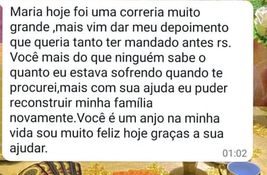 Se você já procurou várias pessoas e não teve êxito, aqui você encontrará o verdadeiro direcionamento espiritual. Com minha mediunidade desenvolvida e a força dos meus guias de luz, estou preparada para lidar com qualquer tipo de problema espiritual — sem enrolação e com a força da verdade.