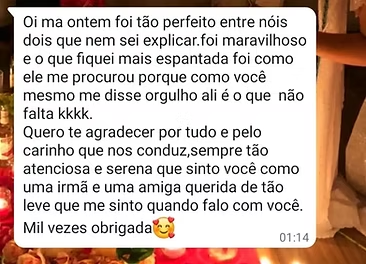 Hoje, com mais de 20 anos de caminhada, eu me especializei em trabalhos amorosos e na leitura profunda dos oráculos. Eu não apenas interpreto sinais; eu uso a força do meu axé e a sabedoria dos meus guias para abrir caminhos e restaurar laços que pareciam perdidos.
